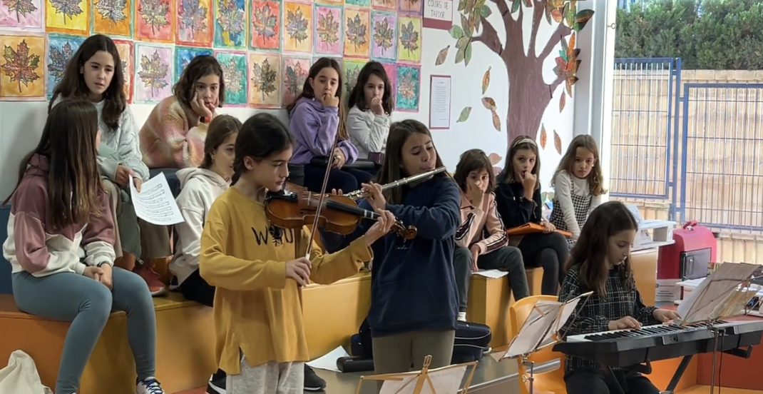 L'alumnat s’introdueixen en el món dels concerts tot assistint al Palau de la música a diferents espectacles musicals. A través de classes dinàmiques i participatives els nens i les nenes tenen la possibilitat d’educar la seva oïda, conèixer les qualitats del so, viure el ritme i el moviment a través d’exercicis i de la dansa, aprendre cançons i iniciar-se en el coneixement i l’ús d’instruments.